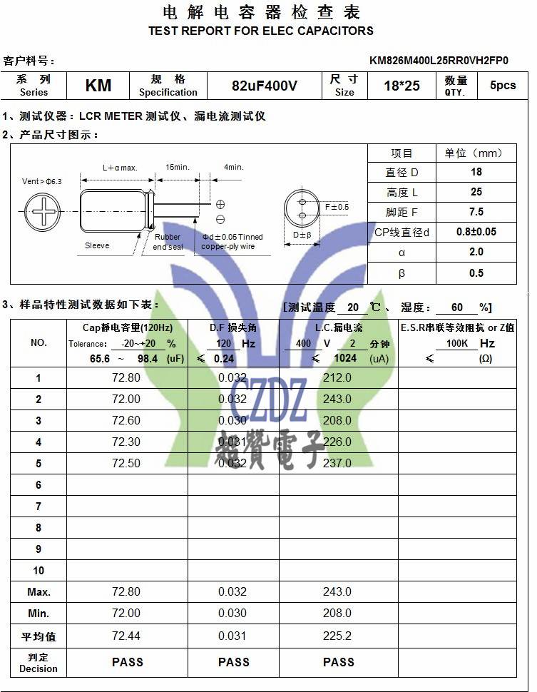 KM 82UF400V 18*25ChengX Chengxing brand full range of aluminum electrolytic capacitors